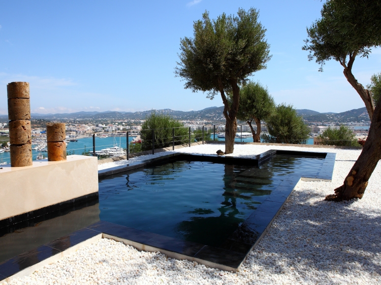This strategic position not only provided safety but also wonderful views of the city and blue Mediterranean Sea. Add to this the tranquillity of the location – the area around the hotel is accessed only by guests, then you have the recipe for a relaxing stay, yet be near enough the high life of Ibiza town, which is only a stone’s throw away. The hotel has eight apartments, two of which are suite and a junior suite with terrace and external Jacuzzi.