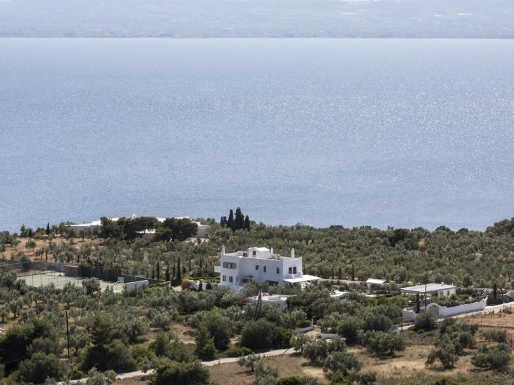 Our Villa Elena is a superb luxury Villa for an exclusive stay with your family or friends. This Villa offers accommodation for a maximum of 25 guests that want to enjoy the highest luxury comfort combined with exclusive services such as a private chef, concierge service and private tours. Villa Elena has 10 comfortable bedrooms, 9 modern bathrooms, a spacious living with fireplace. The dining area hosts large groups and opens up to the fully equipped kitchen. A Billard / Pool room and private Sauna complete the luxury amenities. The Outdoor area offers a large swimming pool, private tennis court, varies lounge areas and a barbecue area and pizza oven. An organic garden area with homegrown vegetable and fruit is also available for guests. Just let yourself be spoilt by a local barbecue dinner of a private chef. Catering or special events are requested as an extra option. Just contact us for this extra request. The Villa is located 300 meters from the beach, in a wonderful setting overlooking the Corinthian Gulf and the surrounding hills. Located near the famous Spa town of Loutraki, the villa is the perfect place to explore the Peloponnese region.