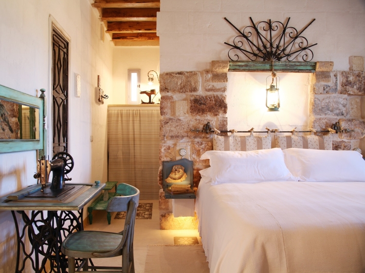 But back to Masseria Montenapoleone: once open the door of one of the suites, you are carried away to a world of bucolic and rural beauty. Each of the suites has been designed differently with revived artefacts which are both a journey into imagination and a memory of a time gone.
