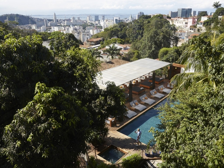 A maioria dos 40 quartos (ver a baixo) tem varanda e oferece vistas fantásticas para a baía do Rio de Janeiro, incluindo o Cristo Redentor. Todos eles são bastante espaçosos, o mais pequeno tem 30m2 aproximadamente. Os jardins e a piscina, também eles com vista sobre a paisagem, fazem esquecer o facto da praia mais próxima estar a 15 minutos de carro (note que este não é um hotel de praia). Mas atenção, um dos “musts” aqui é sem dúvida, sentado no bar ou a beira da piscina com uma bebida em mão, presenciar o sol a deitar-se sobre o Rio: é romântico, exótico e deslumbrante. Tal como o Hotel Santa Teresa.